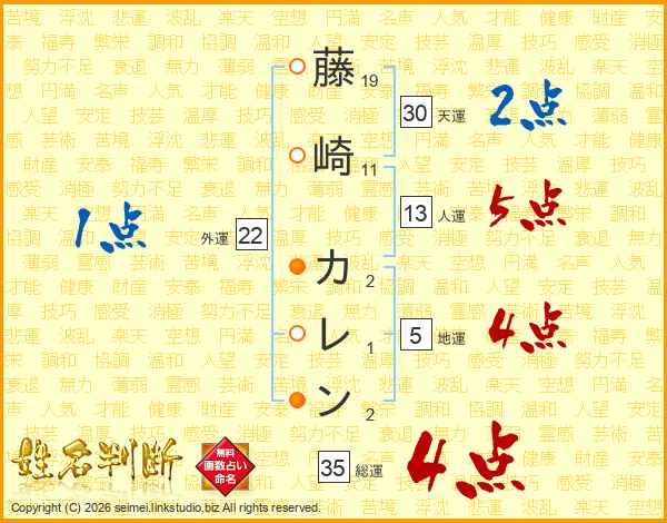 藤崎カレンさんの運勢 姓名判断 名前の画数から無料で